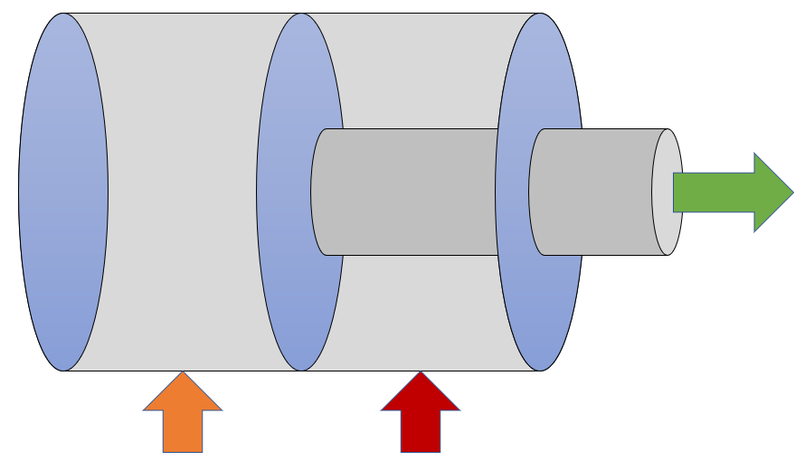 Om cylindern behöver klara att trycka med {{Math.round(area*tryck)}}N och trycket är i den bakre kammaren är {{tryck}}MPa hur stor area på cylindern behvös då?